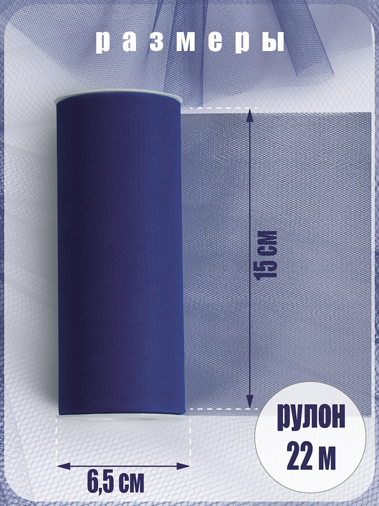 Фатин на шпульке средней жесткости 150 мм / 22.86 метра, TBY.MS.200.21, цв.21 т.синий