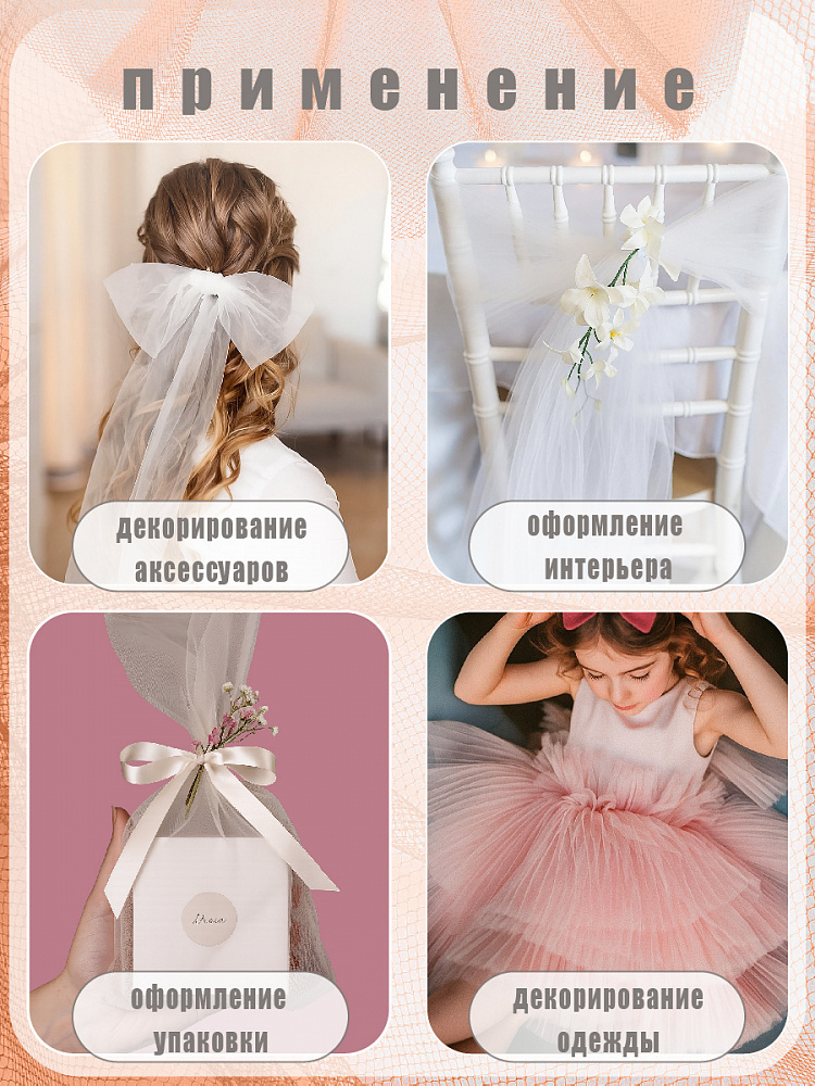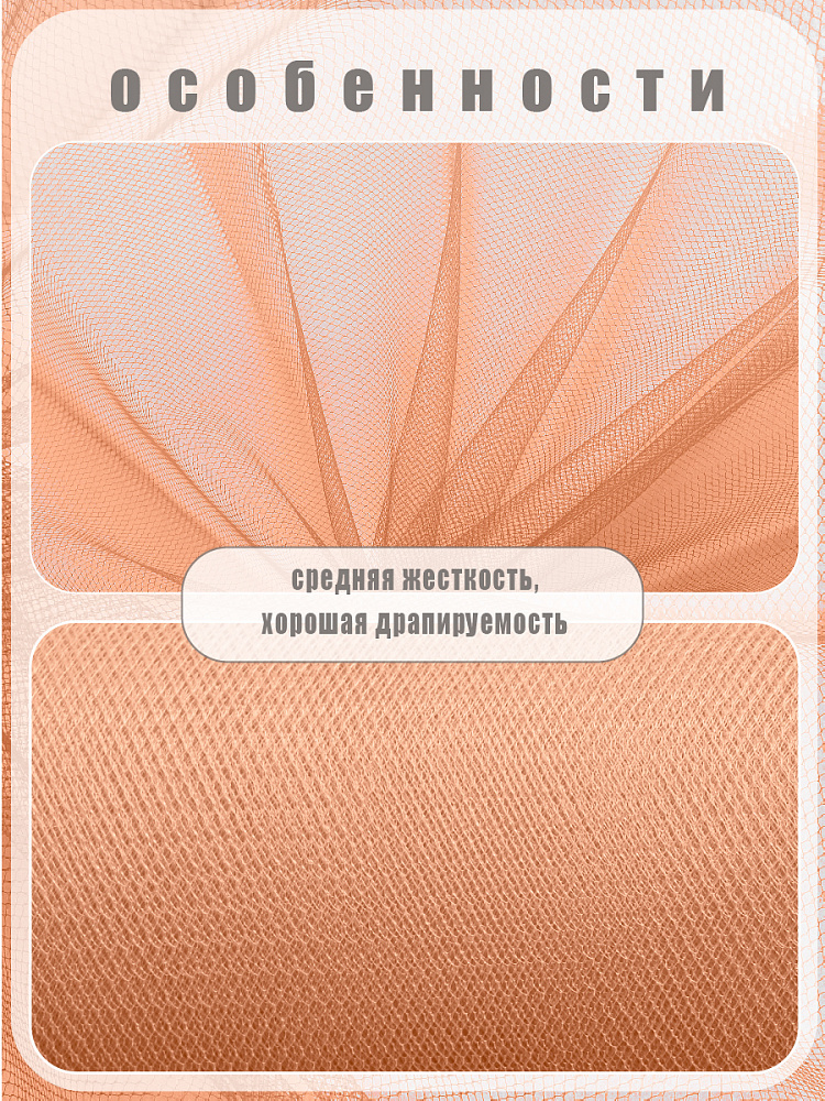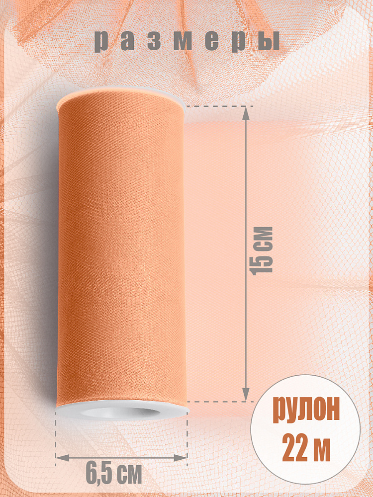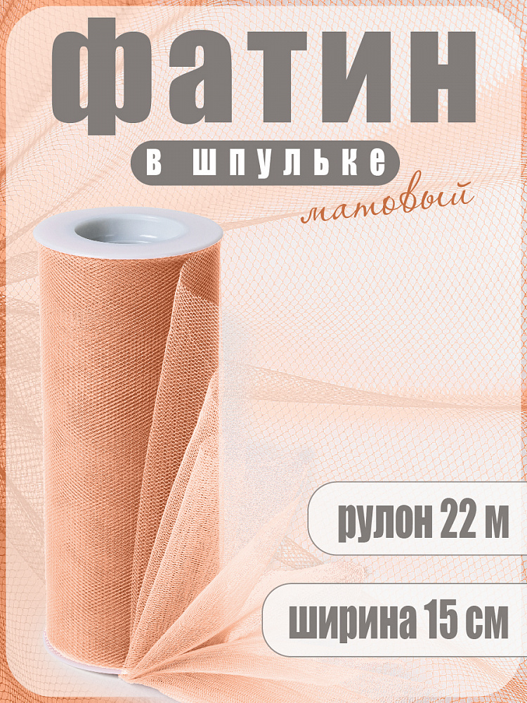 Фатин на шпульке средней жесткости 150 мм / 22.86 метра, TBY.MS.200.36, цв.36 персиковый