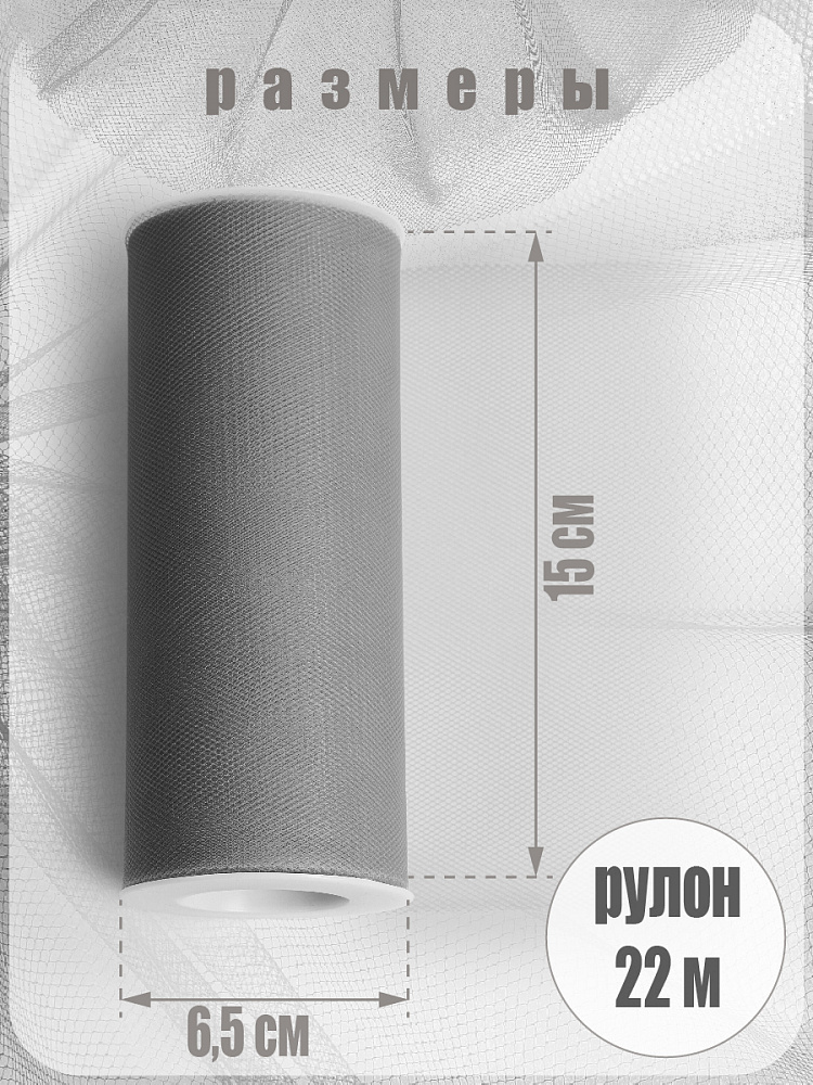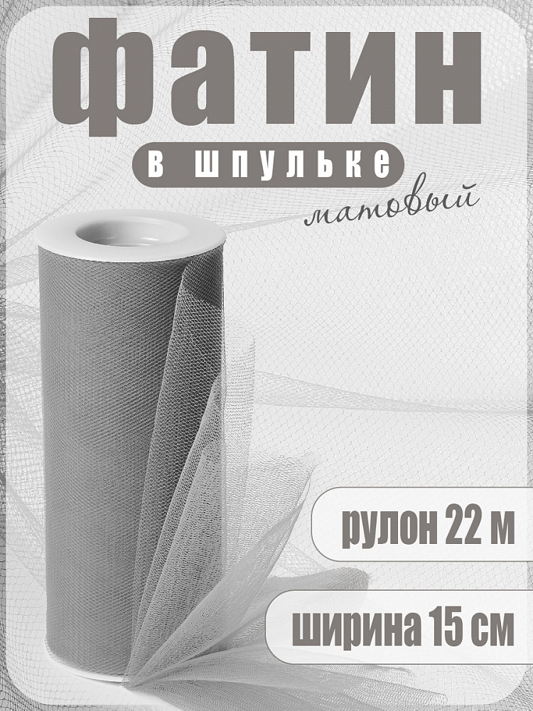 Фатин на шпульке средней жесткости 150 мм / 22.86 метра, TBY.MS.200.37, цв.37 серый