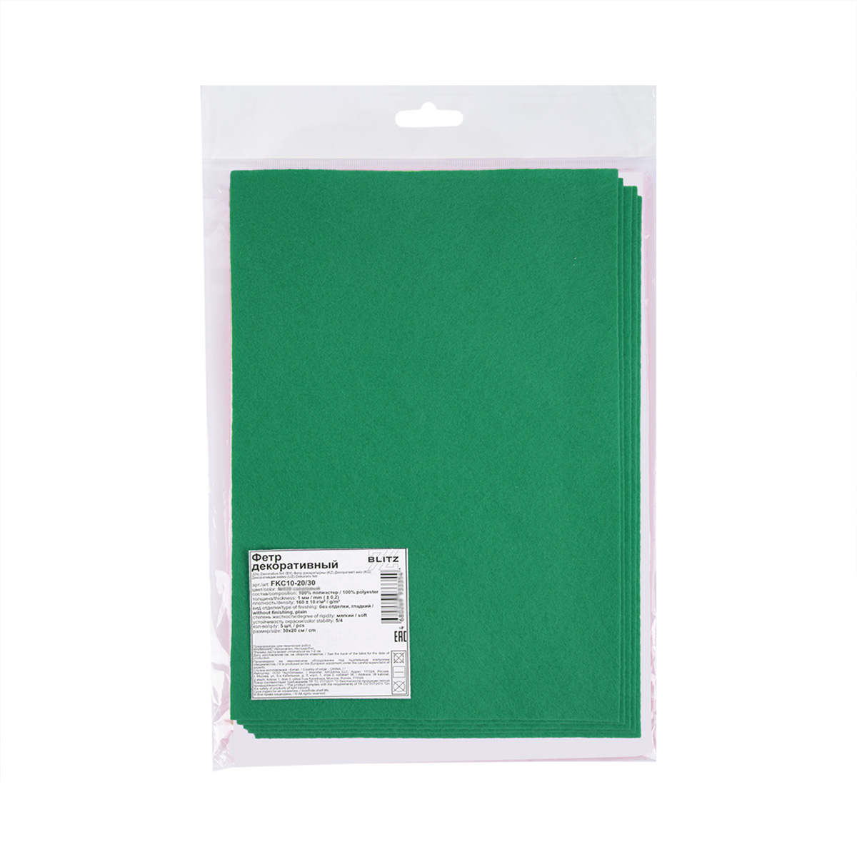 Фетр листовой 1 мм, 20х30 см, 5 шт, 049 т.зеленый, Blitz FKC10-20/30