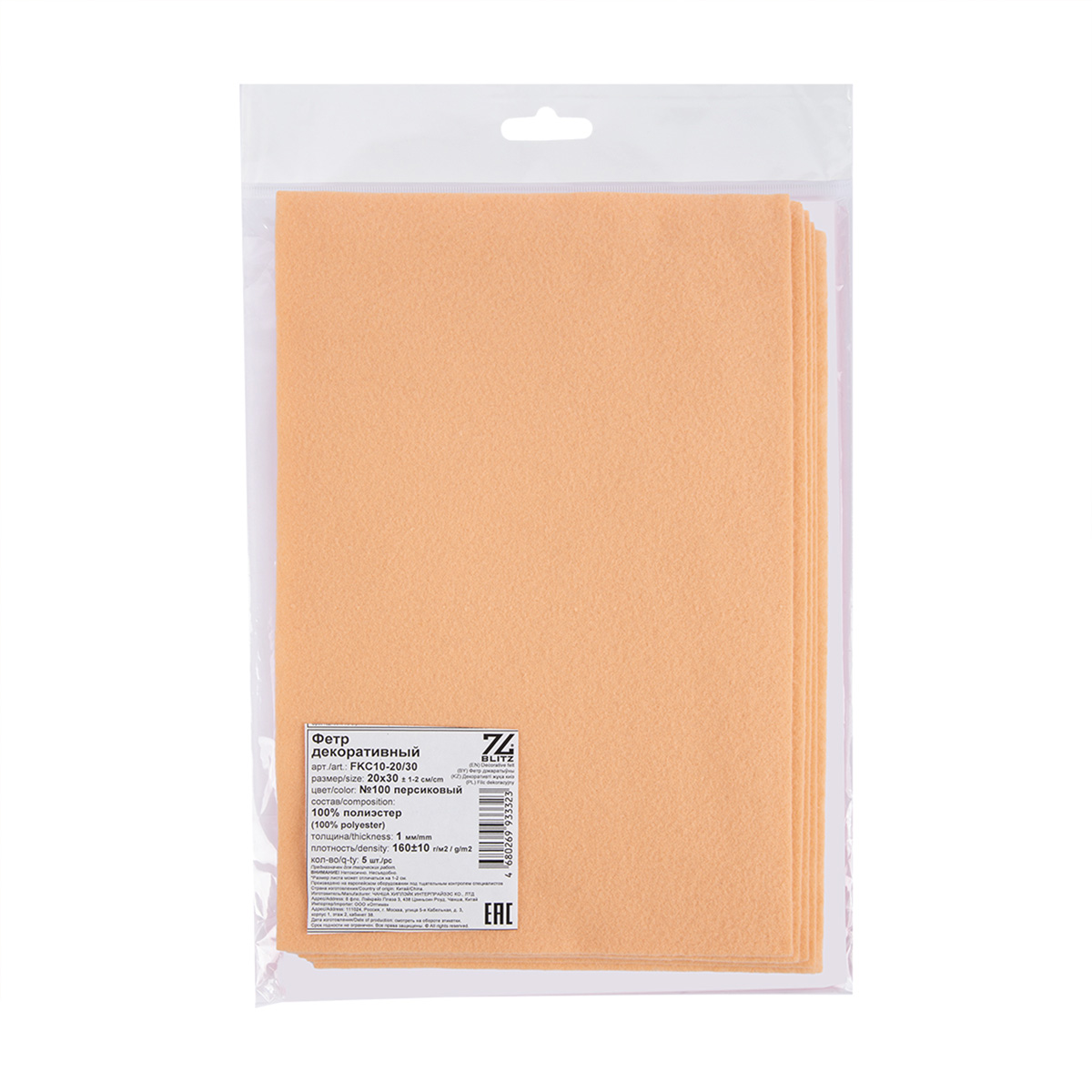Фетр листовой 1 мм, 20х30 см, 5 шт, 100 персиковый, Blitz FKC10-20/30