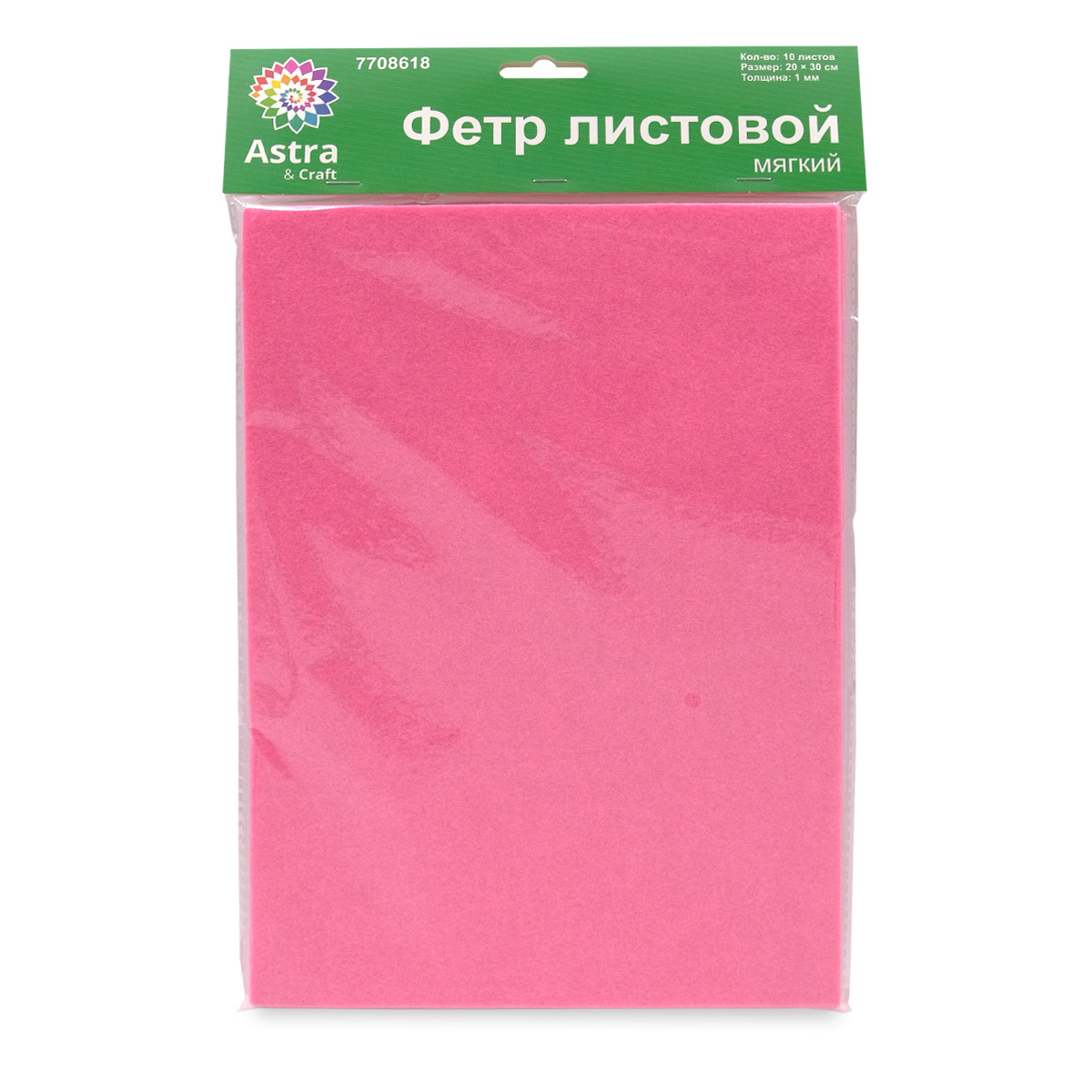 Фетр листовой мягкий 1.0 мм, 170гр, 20х30см, 10 шт/упак Astra&Craft (AF811/YF611 св.розовый)