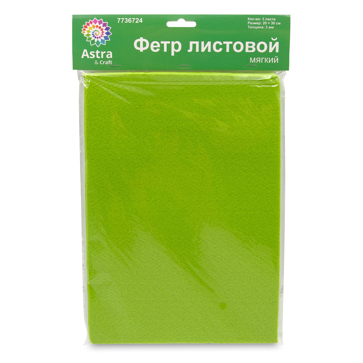 Фетр листовой мягкий 3.0 мм, 400гр, 20х30см, 3 штук Astra&Craft (AF838/YF642 желто-зеленый)