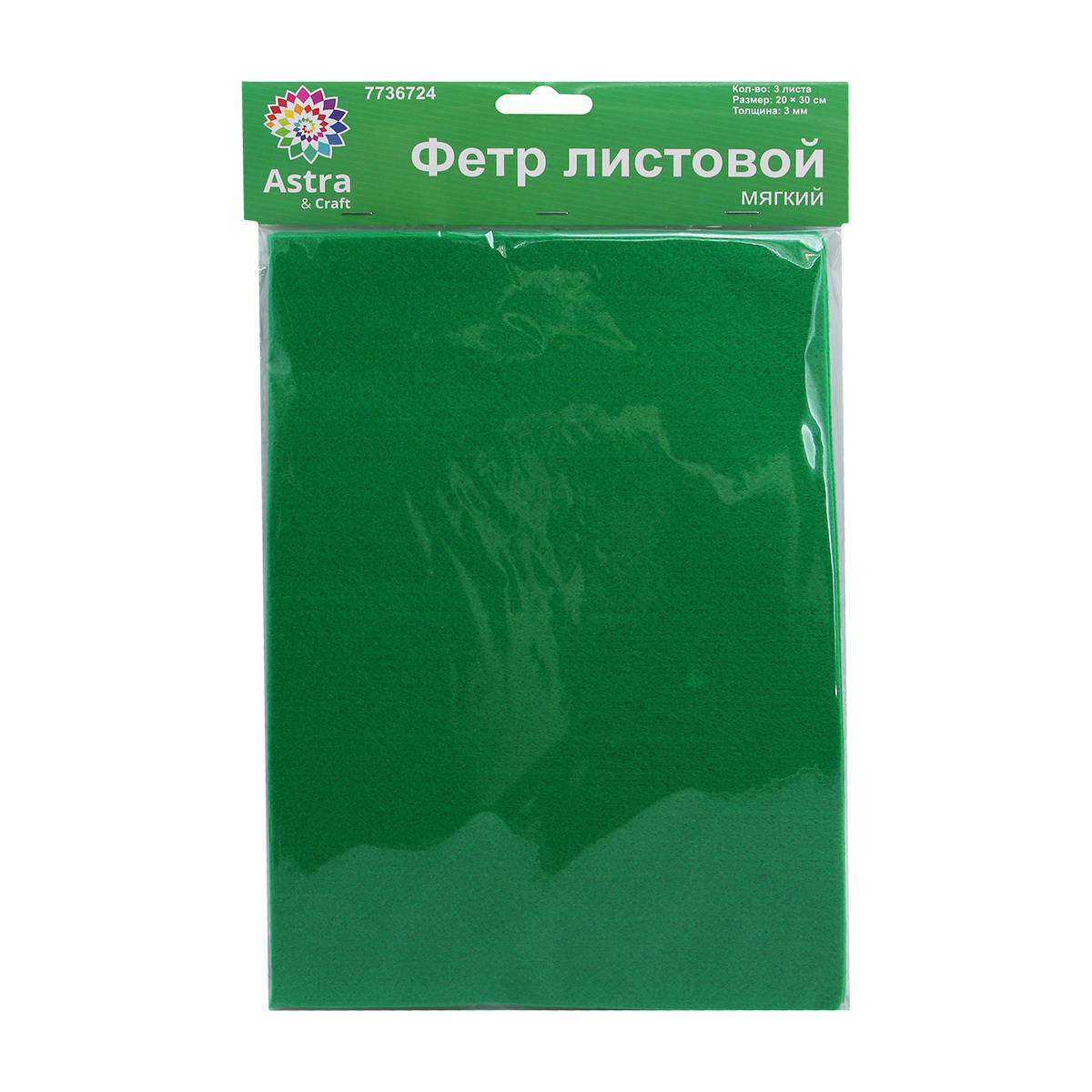 Фетр листовой мягкий 3.0 мм, 400гр, 20х30см, 3 штук Astra&Craft (AF852 фисташковый)