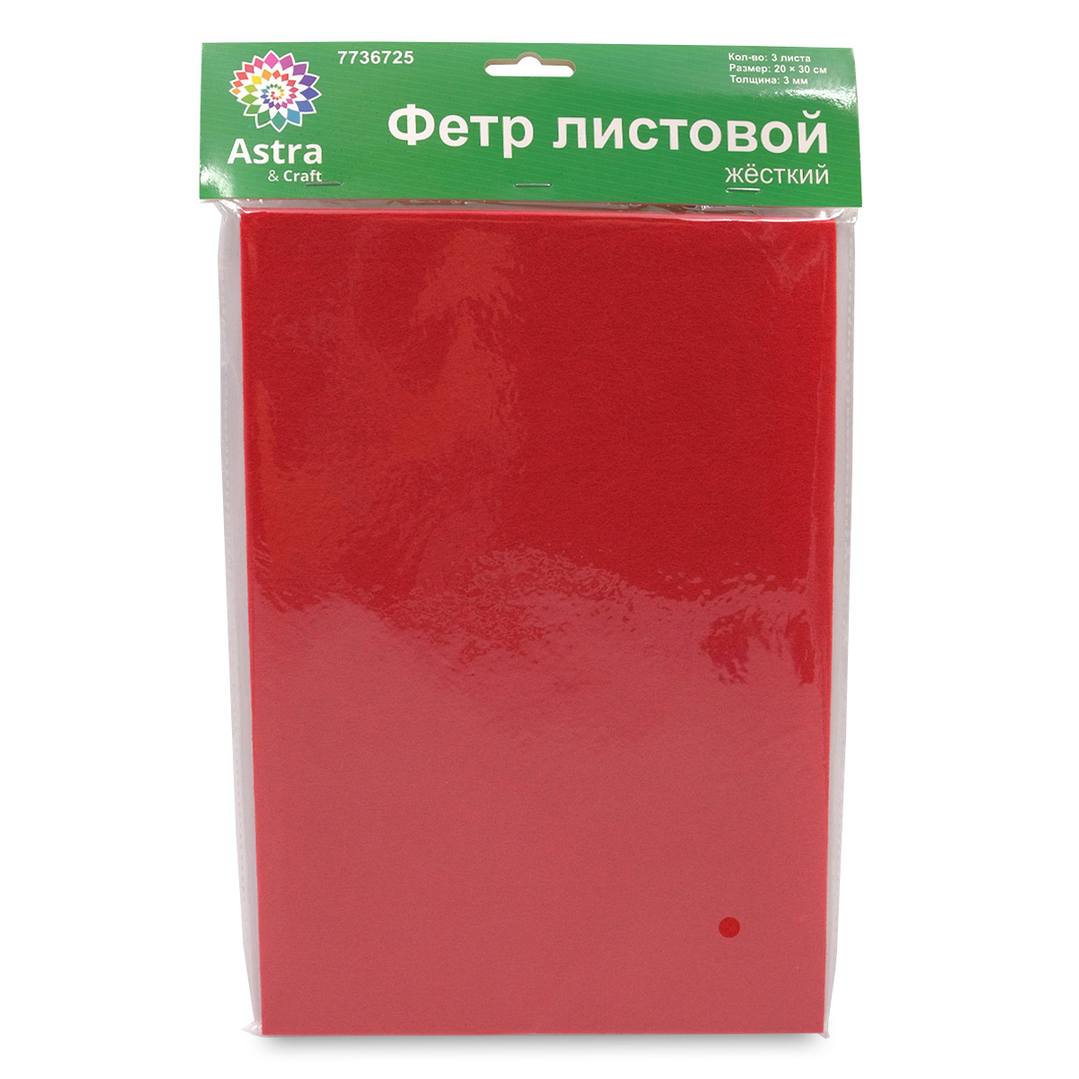 Фетр листовой жесткий 3.0 мм, 20х30см, 3 штук Astra&Craft (AF801/YF601 алый)