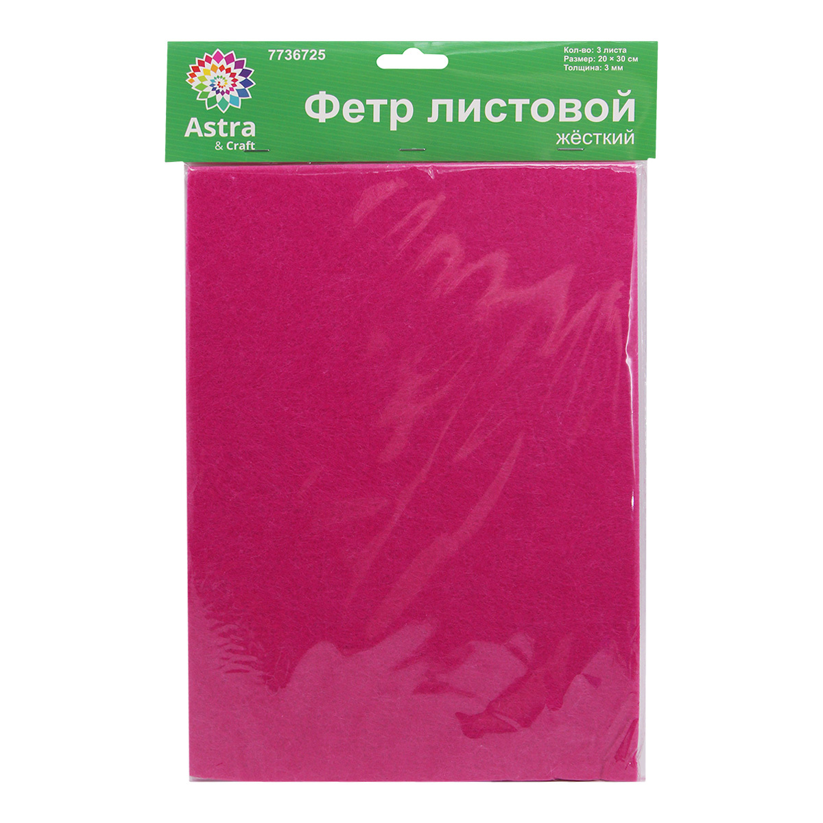 Фетр листовой жесткий 3.0 мм, 20х30см, 3 штук Astra&Craft (AF809 фуксия)