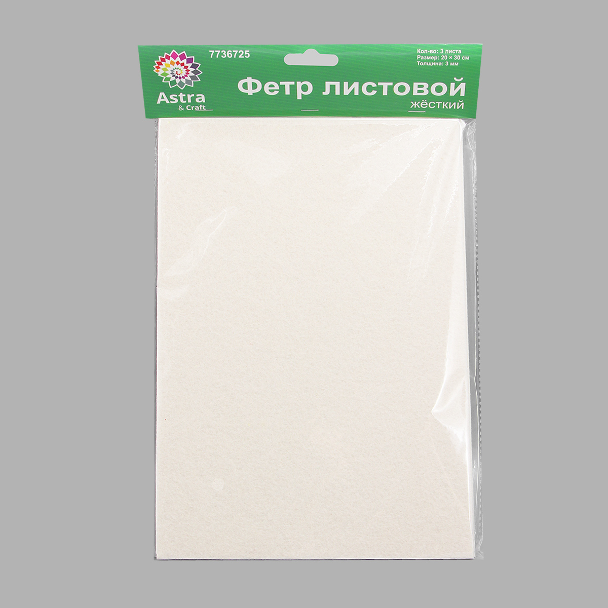 Фетр листовой жесткий 3.0 мм, 20х30см, 3 штук Astra&Craft (AF826 молочный)