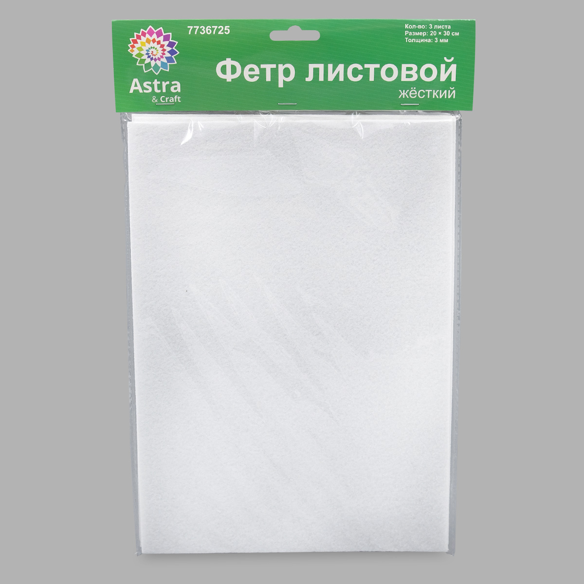 Фетр листовой жесткий 3.0 мм, 20х30см, 3 штук Astra&Craft (AF827/YF660 белый)