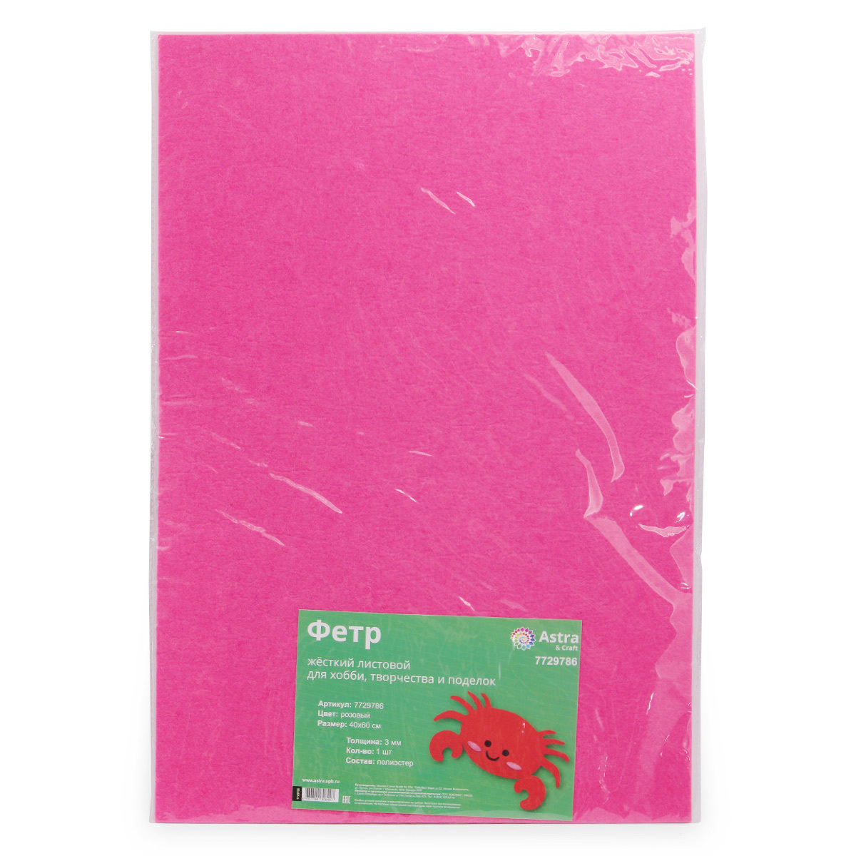 Фетр листовой жесткий 3.0 мм, 40х60см, 1шт/упак Astra&Craft (AF813 розовый)