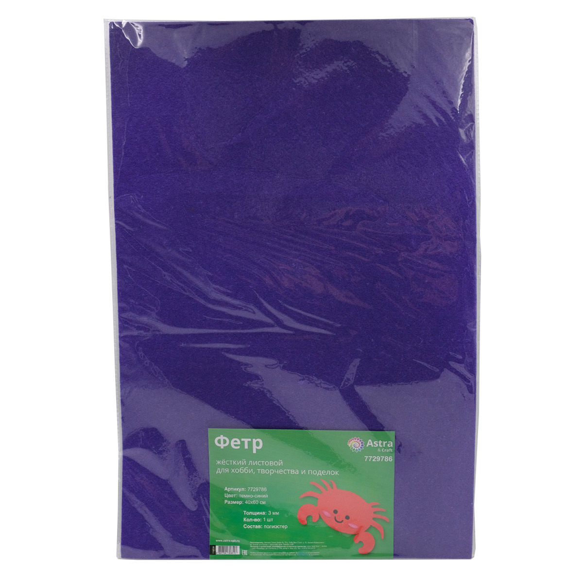Фетр листовой жесткий 3.0 мм, 40х60см, 1шт/упак Astra&Craft (AF875/YF625 т.синий)