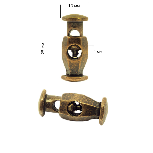 Металлический фиксатор для шнура применяется в качестве фурнитуры для верхней и спортивной одежды и аксессуаров. Фиксатором регулируют длину шнура, зажав шнур в определенном месте. Для установки необходимо нажать на кнопу фиксатора и пропустить шнур через отверстие. Подходит для круглых и плоских шнуров.