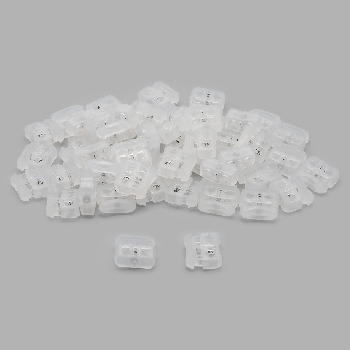 Фиксатор (зажим) для шнура пластик 2 отв., ⌀5.0 мм, 18х20 мм, плоский (ПП), прозрачный, 50 шт