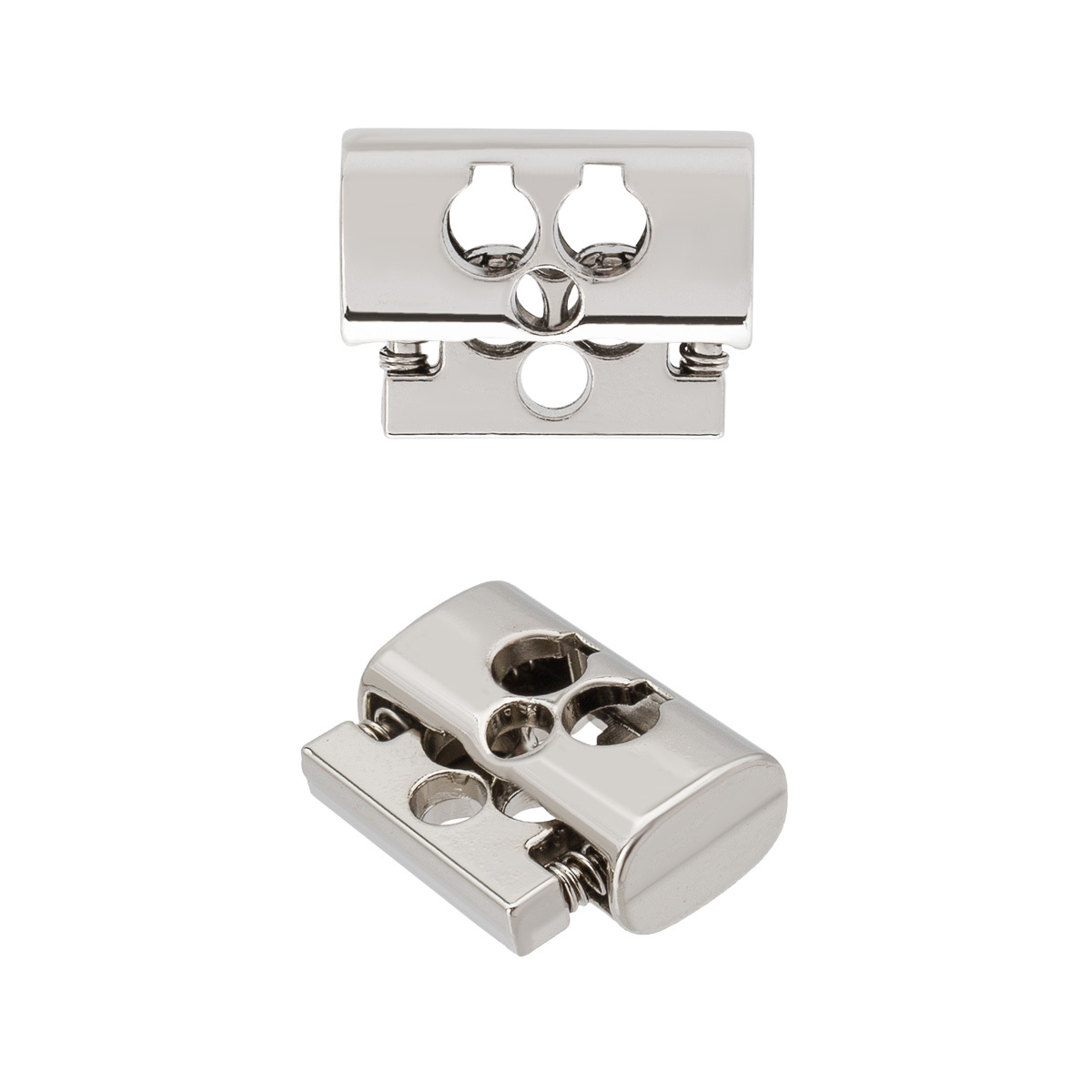 Фиксатор (зажим) для шнура металл 3 отв., ⌀4.0 мм (18.8х14 мм), никель, ГУБ13921, 10 шт