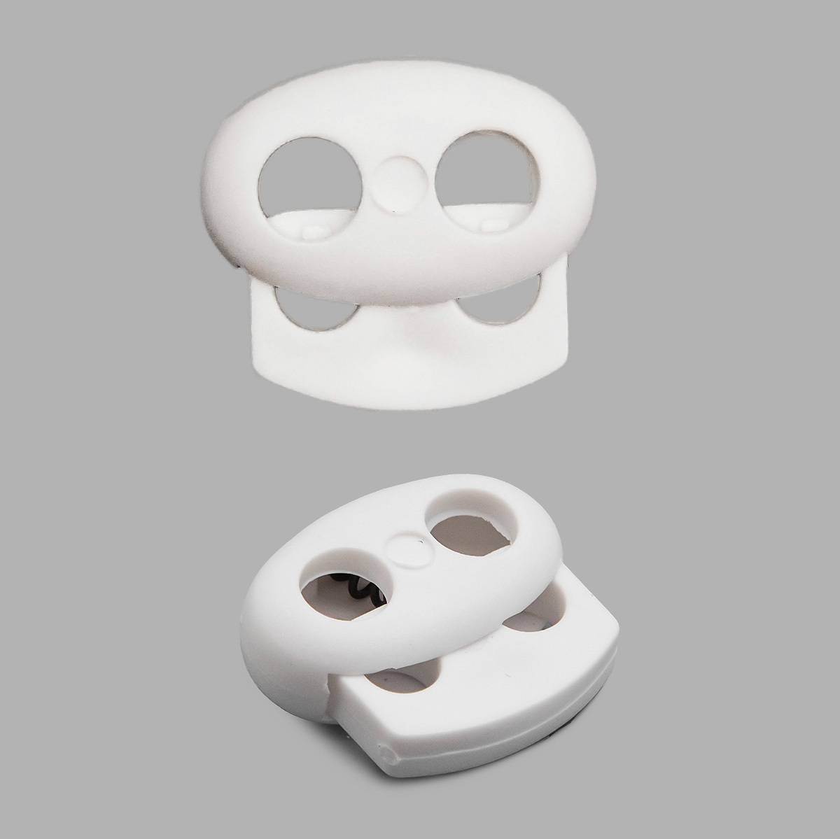Фиксатор (зажим) для шнура пластик 2 отв., ⌀4.0 мм, 14х17 мм, овал малый, цв. кипенно-белый, 100 шт