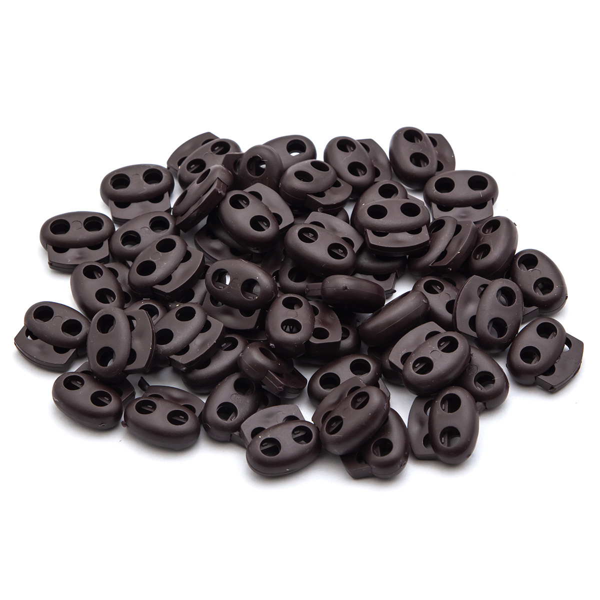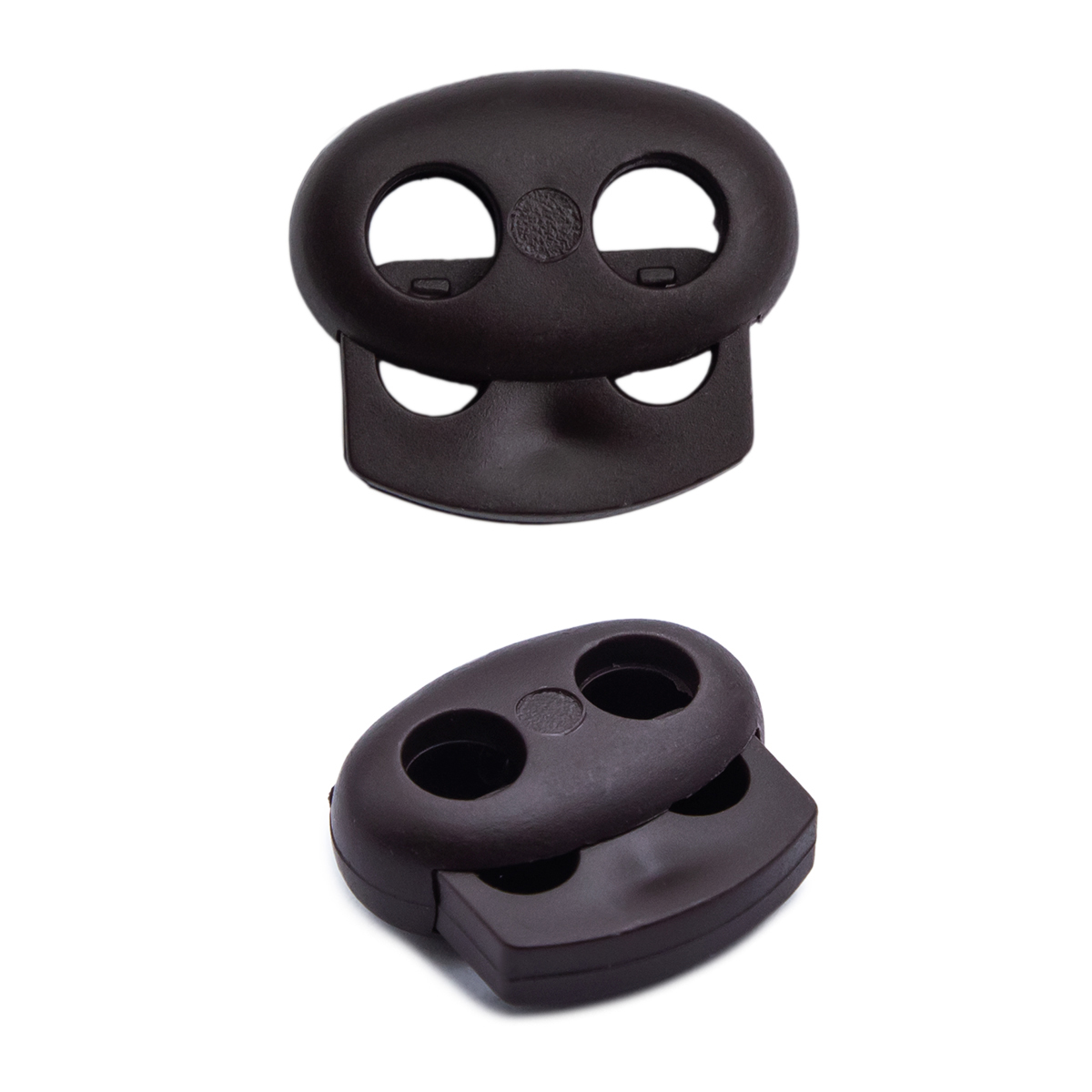 Фиксатор (зажим) для шнура пластик 2 отв., ⌀4.0 мм, 14х17 мм, овал малый ПП, коричневый, 100 шт
