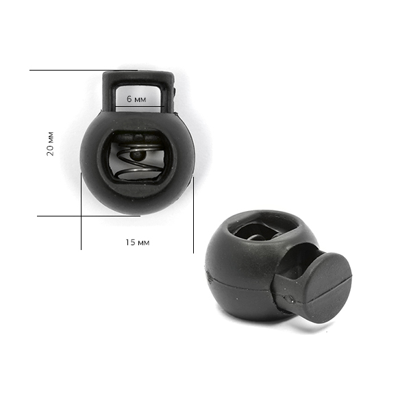 Фиксатор (зажим) для шнура пластик 1 отв., ⌀6.0 мм, 20х15 мм, шар 8953, цв.черный А уп.500 шт