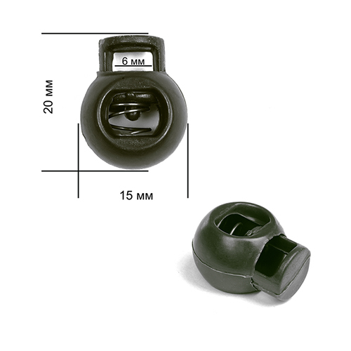 Фиксатор (зажим) для шнура пластик 1 отв., ⌀6.0 мм, 20х15 мм, шар 8953, цв.оливковый А уп.500 шт