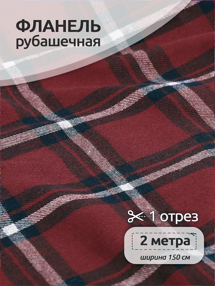 Ткань рубашечная Фланель - смесовый материал, отличающийся своей универсальностью. На лицевой стороне полотна ворс, изнанка имеет более гладкую поверхность с выраженной текстурой. Фланель обладает высокими износостойкими характеристиками, не тянется и не скатывается, при этом ткань мягкая и хорошо удерживает тепло. Актуальный принт в клетку популярен при пошиве таких изделий, как рубашки, платья, а также домашней одежды, рукоделия и текстиля. Фланель можно стирать в машинке с отжимом на невысоких оборотах