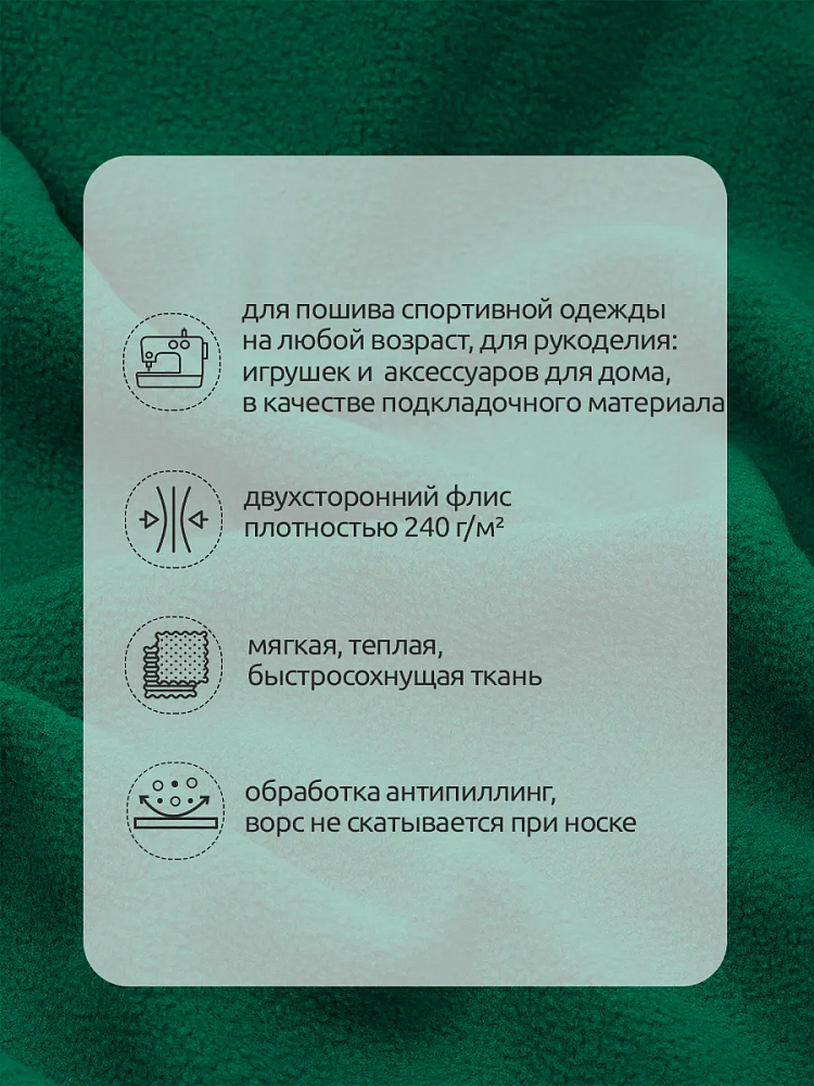Флис 2-сторонний 0240-F258 240 г/м², 100% ПЭ 150см цв.F258 зеленый уп.10м