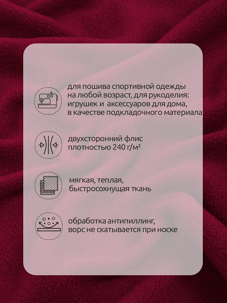 Флис 2-сторонний 240 г/м², 150 см / 10 метров, N-TBY-0240-S273, цв.S273 бордовый