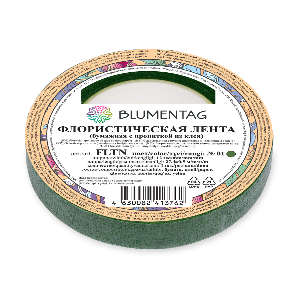 Флористическая лента "тейп-лента" "Blumentag" FLTN - это тонкая, бумажная эластичная лента с легким клеящим эффектом.