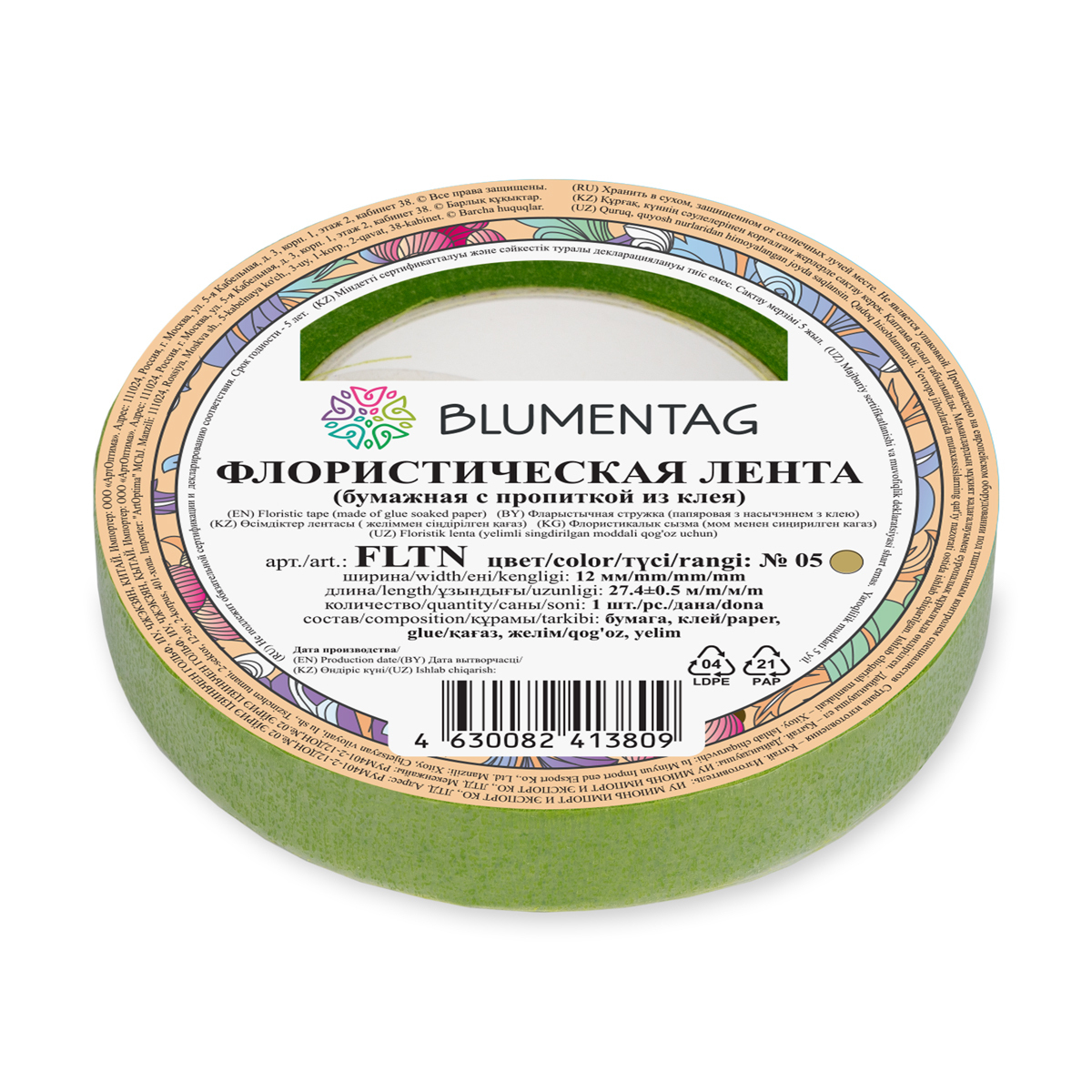 Флористическая лента "тейп-лента" "Blumentag" FLTN - это тонкая, бумажная эластичная лента с легким клеящим эффектом.