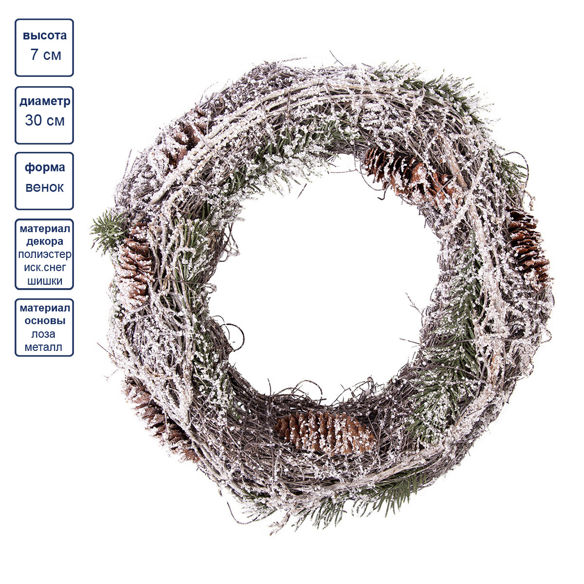 Состав: виноградная лоза, искусственный снег, сосновые шишки