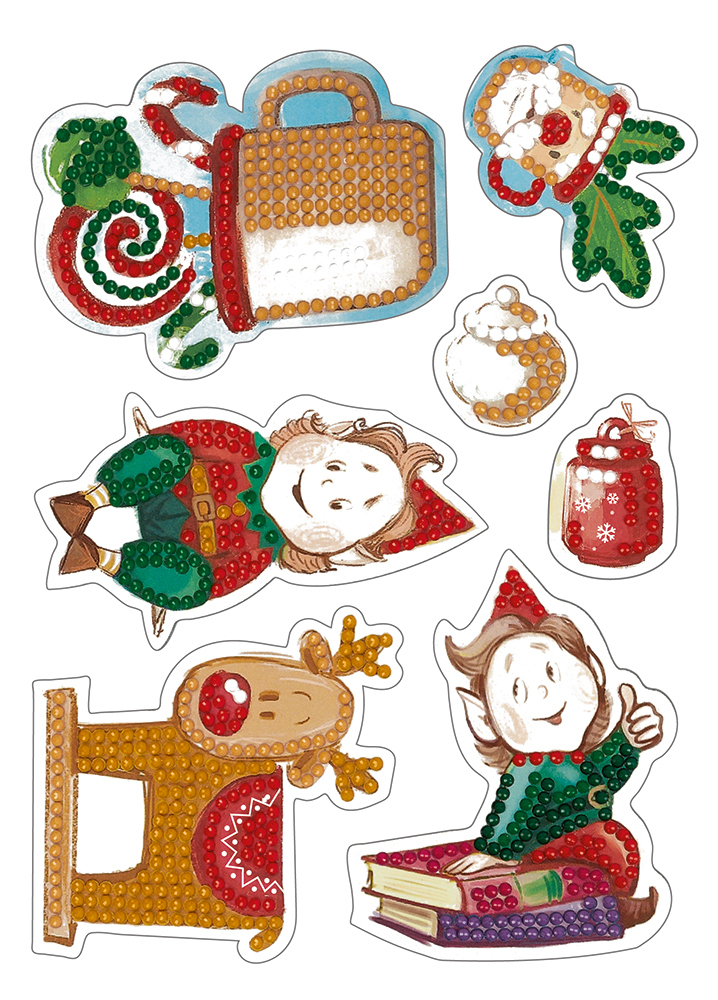 - один лист с несколькими небольшими наклейками, с напечатанными на них схемами для приклеивания страз и клеевым слоем с защитной плёнкой,