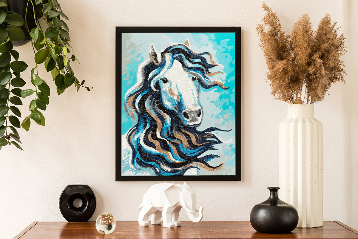 Выполнение работы не требует специальных навыков, выкладывать картину очень легко и просто. Квадратные стразы наклеиваются поверх изображения со схемой на уже нанесенный клеевой слой. Увлекательный процесс создания поможет развить мелкую моторику и скрасить свободное время. Благодаря граненным акриловым стразам, неповторимый блеск готовой работы напоминает мерцание настоящих кристаллов.