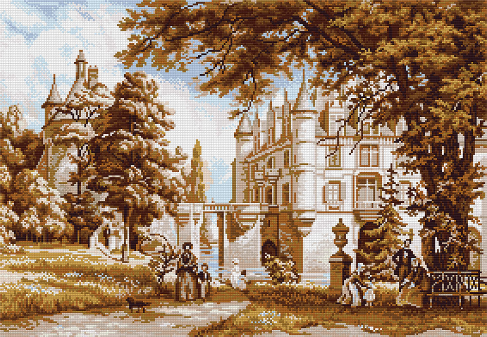 Выполнение работы не требует специальных навыков, выкладывать картину очень легко и просто. Квадратные стразы наклеиваются поверх изображения со схемой на уже нанесенный клеевой слой.