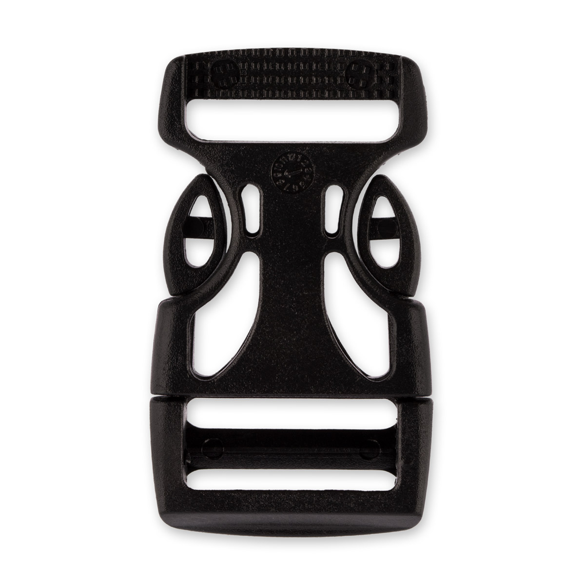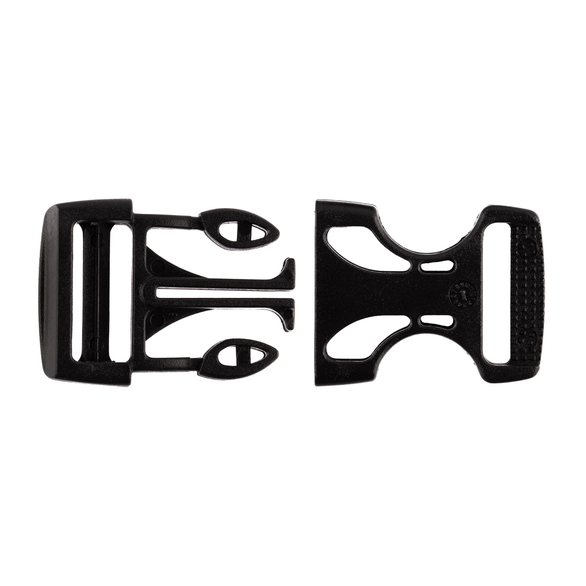 Фастекс с оригинальным дизайном используется при пошиве или ремонте кожгалантерейных или швейных изделий, сумок, рюкзаков. Предназначен для быстрого разъемного соединения и регулировки длины различных лент, строп и других частей. Изготовлен из прочного пластика высокого качества - полиацеталя. Может быть использован в комплекте с регулировочными пряжками или отдельно.
