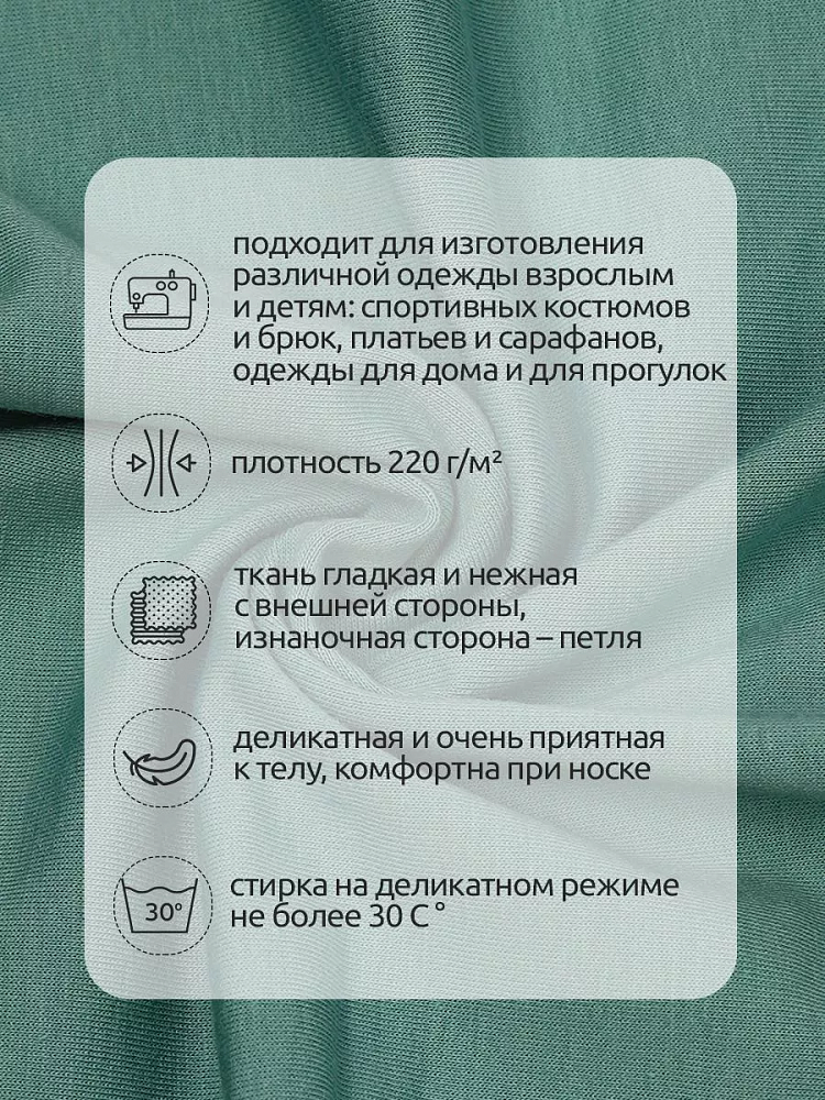 Футер с хлопком 2х нитка петля – деликатная и приятная для тела ткань. Она гладкая с внешней стороны, мягкая и нежная – с внутренней, благодаря этому удивительно комфортна при носке. Изнаночная сторона – петля. Футер ткань для шитья состоит из 70% хлопка 25% полиэстера и 5% лайкры. Добавленный в состав эластан делают ткань износоустойчивой, менее сминаемой и хорошо сохраняющей форму. Из футера создают одежду для детей, легкую одежду для повседневной жизни, постельное белье, одежду для дома, спортивные костюмы, платья, шорты, футболки. 1кг, 2,4м