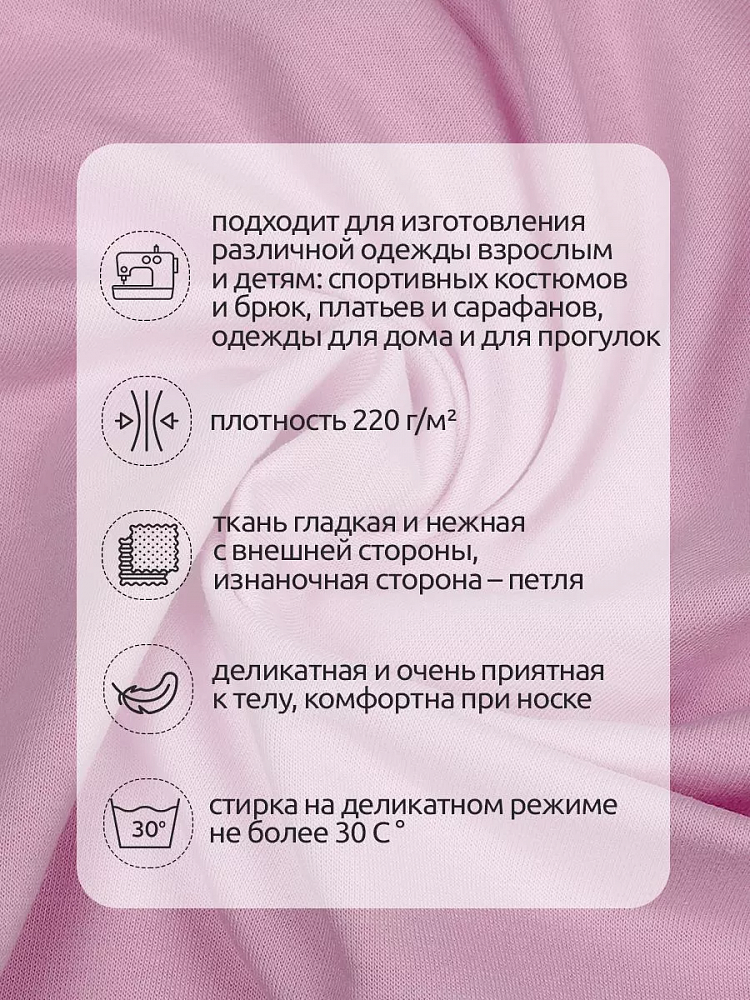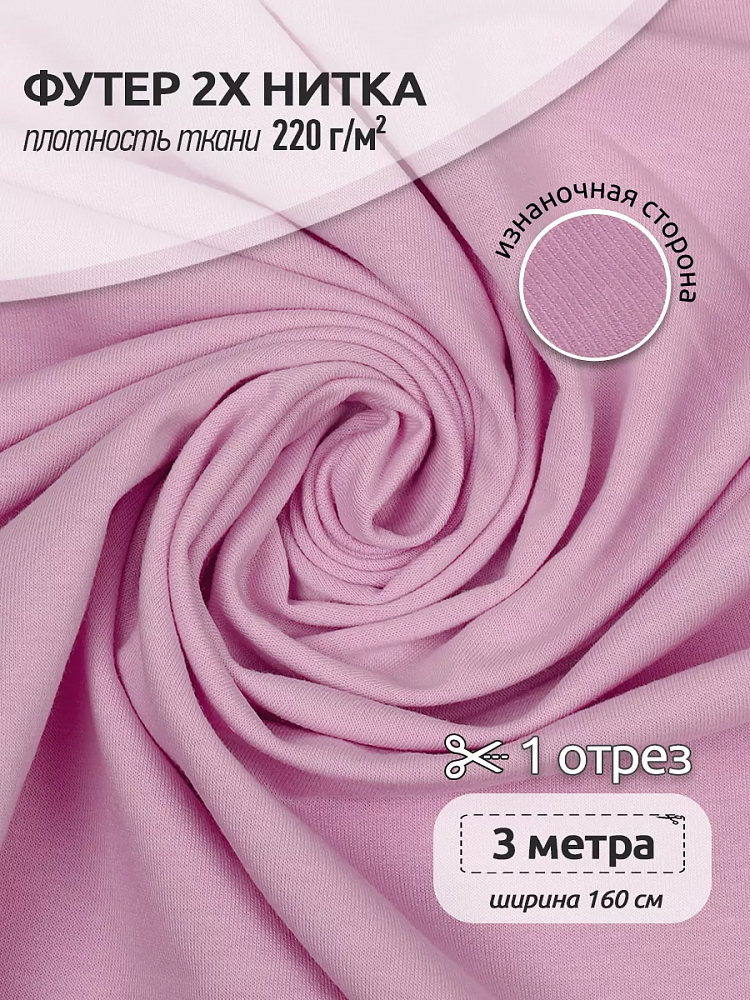 Футер 2-нитка петля поликоттон стрейч 220 г/м², 160 см / 3 метра, ФУТ2Х.TBY.ХЛ-ПЭ.S207.3, цв.S207 роза