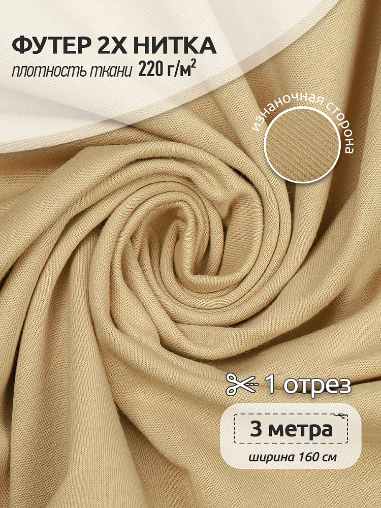 Футер с хлопком 2х нитка петля – деликатная и приятная для тела ткань. Она гладкая с внешней стороны, мягкая и нежная – с внутренней, благодаря этому удивительно комфортна при носке. Изнаночная сторона – петля. Футер ткань для шитья состоит из 70% хлопка 25% полиэстера и 5% лайкры. Добавленный в состав эластан делают ткань износоустойчивой, менее сминаемой и хорошо сохраняющей форму. Из футера создают одежду для детей, легкую одежду для повседневной жизни, постельное белье, одежду для дома, спортивные костюмы, платья, шорты, футболки. 1кг, 2,4м