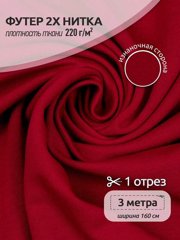Футер 2-нитка петля поливискоза стрейч 220 г/м², 160 см / 3 метра, ФУТ2Х.TBY.ПЭ-ВИС.S171.3, цв.S171 красный