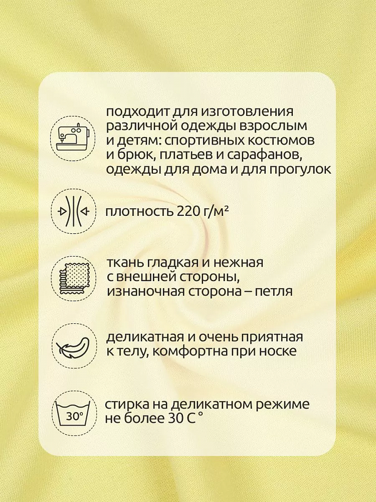 Футер 2х нитка петля Поливискоза стрейч 220г Small French Terry цв.S802 желтый в нарезке 1м