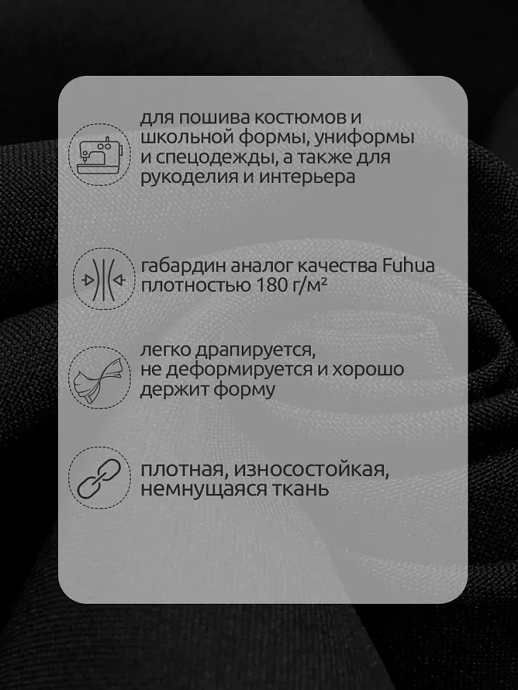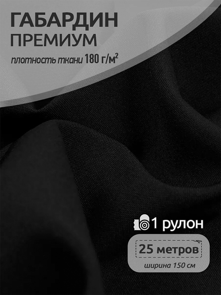 Габардин кач-во Фухуа 180 г/м², 150 см / 25 метров, TBY.Gbf.24102.1, цв.01 черный