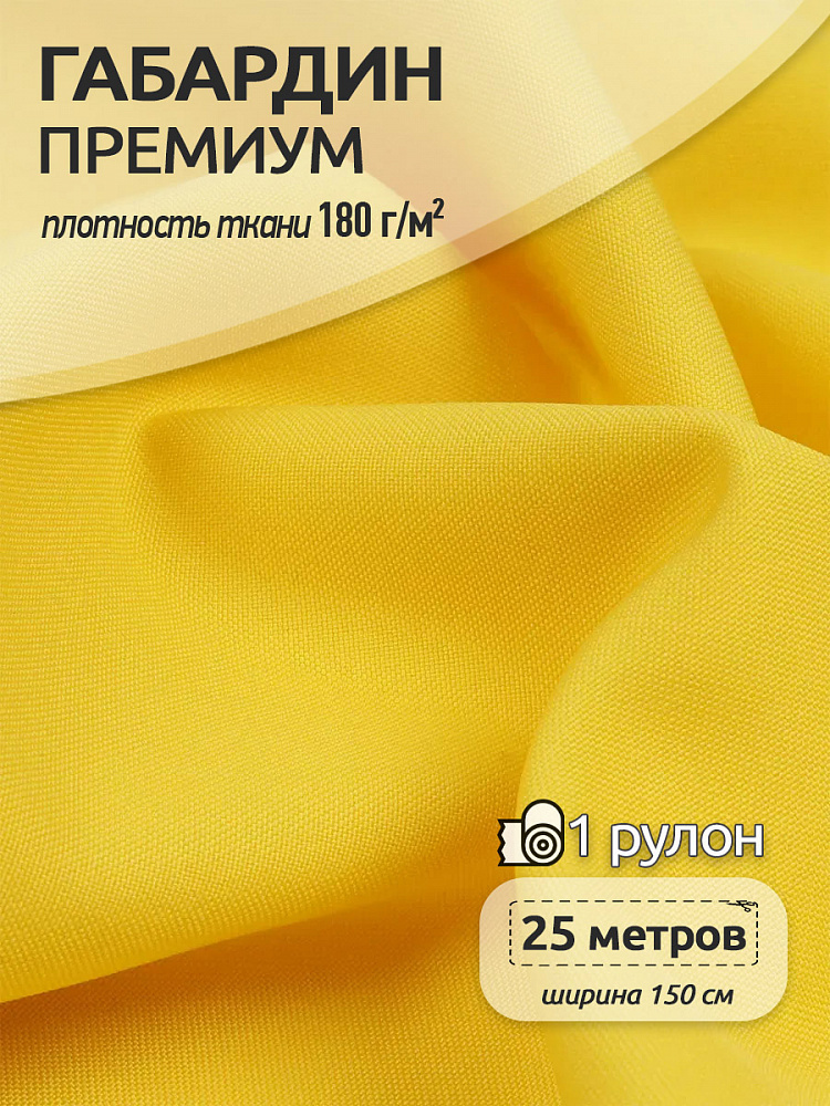 Габардин кач-во Фухуа 180 г/м², 150 см / 25 метров, TBY.Gbf.24102.12, цв.12 желтый