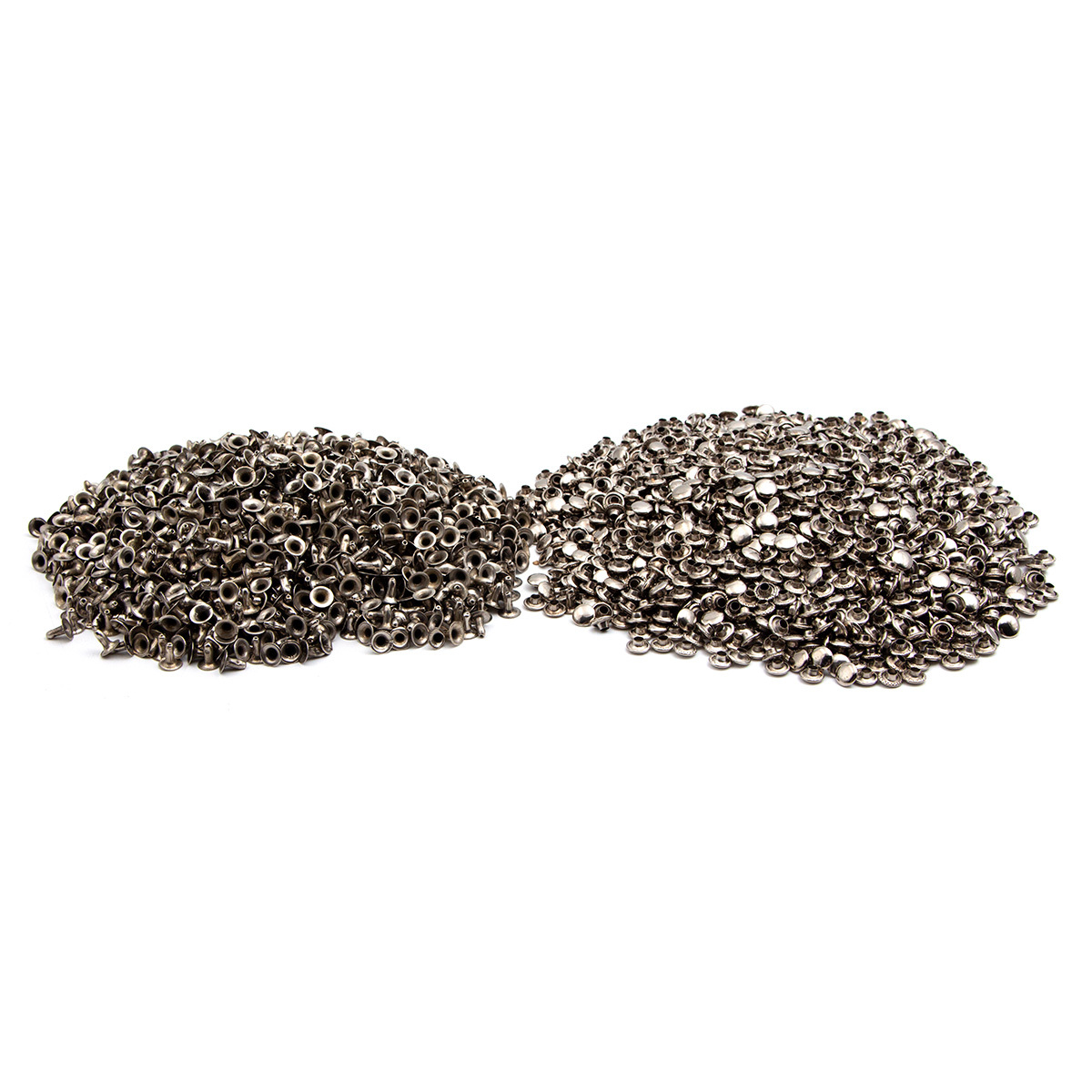 Хольнитены №33 от турецкого бренда New Star изготовлены из стали, металла высокого качества, прочные, не гнутся, сохраняют цвет и выдерживают все стандартные нагрузки. Односторонние - состоят из шляпки, которая устанавливается на лицевую сторону изделия, и ножки с плоским основанием (используется для крепления с обратной стороны). Чтобы правильно выбрать длину ножки, нужно ориентироваться на толщину материала. Для установки данной фурнитуры потребуется специальный пресс и насадка-пуансон. Хольнитены позволяют укрепить швы на одежде или детали на сумках. С их помощью соединяют элементы в труднодоступных для швейной машинки местах и крепят мелкие детали. Размер: 7 на 7 мм. В упаковке примерно 2000 штук.