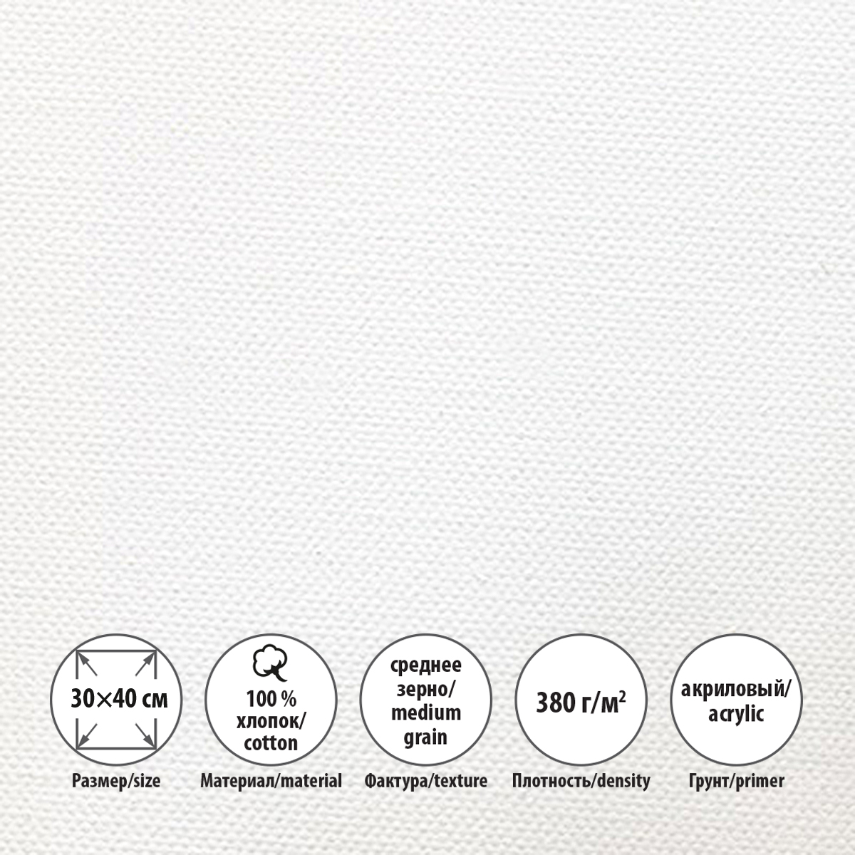 Холст грунтованный на подрамнике 30х40 см, 380 г/м², 2 шт, среднезернистый, Vista-Artista SCC-3040