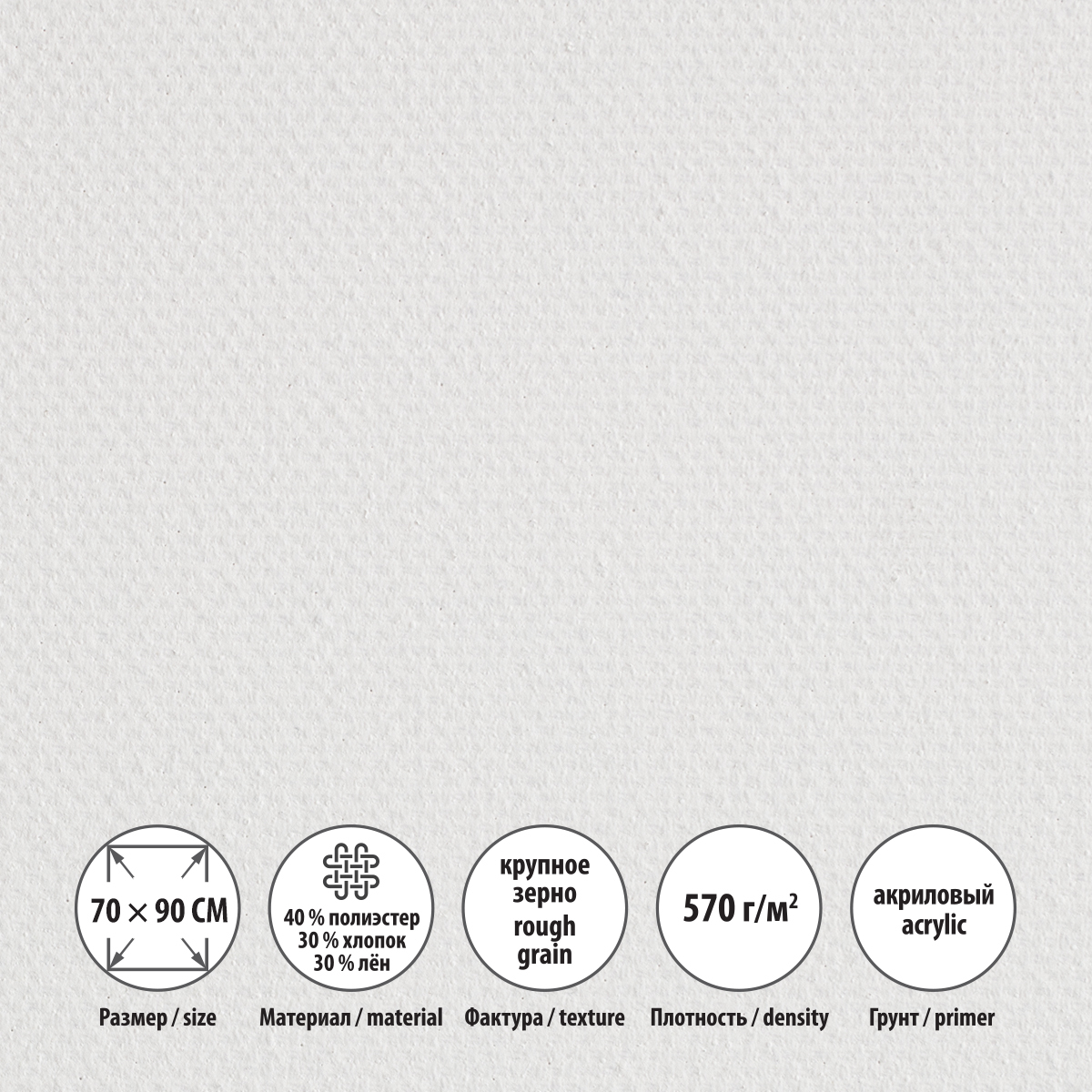 Холст грунтованный на подрамнике 70х90 см, 570 г/м², 2 шт, Слободской крупнозернистый, Vista-Artista AMLG-7090