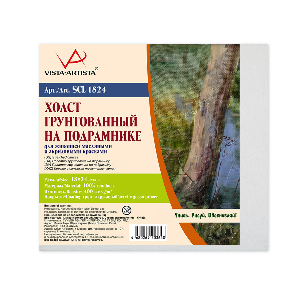 Холст - это идеальная основа для художественного творчества. Холст грунтованный на подрамнике "VISTA-ARTISTA" представляет собой проклеенную и хорошо загрунтованную ткань, натянутую на деревянный подрамник. Продукт используется для живописи масляными и акриловыми красками.