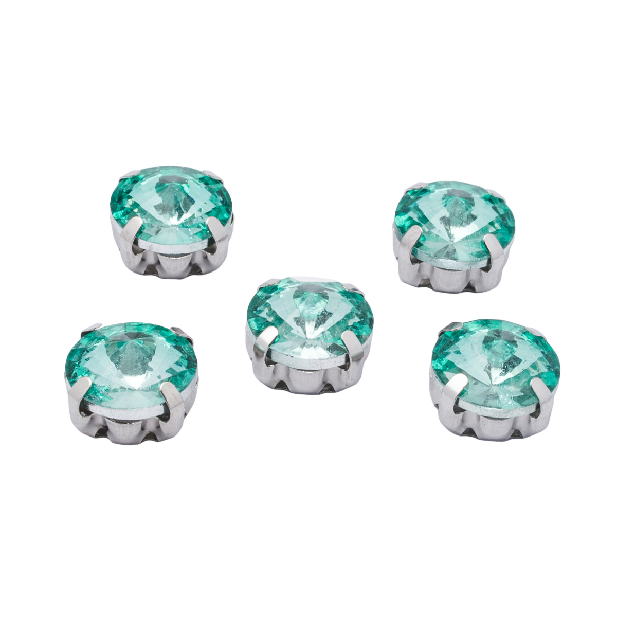 Хрустальные стразы круглой формы в цапах риволи, бирюзовый, 10 мм, 5 шт., РЦ035НН10
