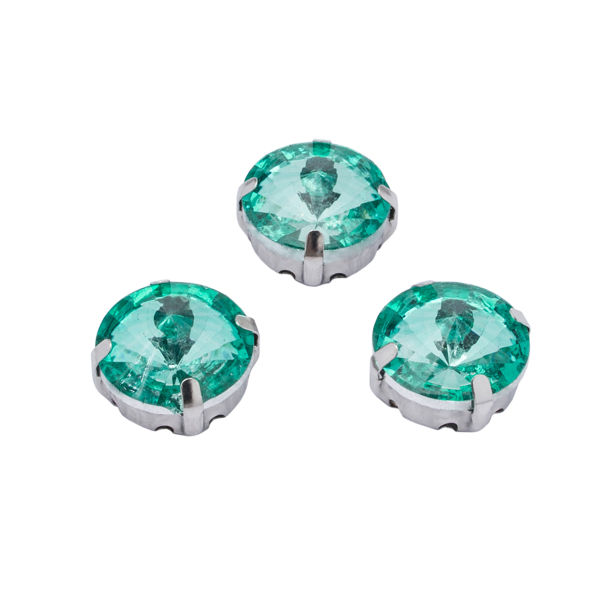Хрустальные стразы круглой формы в цапах риволи, бирюзовый, 12 мм, 3 шт., РЦ035НН12