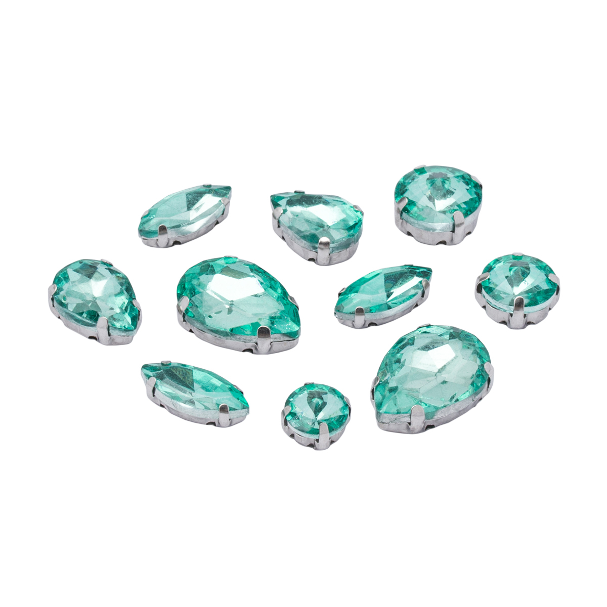 Хрустальные стразы в металлических цапах, форма страз: МИКС, бирюзовый, 10 шт, МФ-34