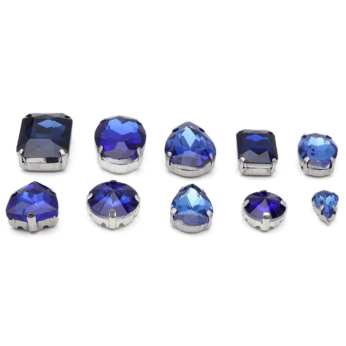 Хрустальные стразы в металлических цапах, форма страз: МИКС, сапфир, 10 шт/упак Astra&Craft, МФ-11