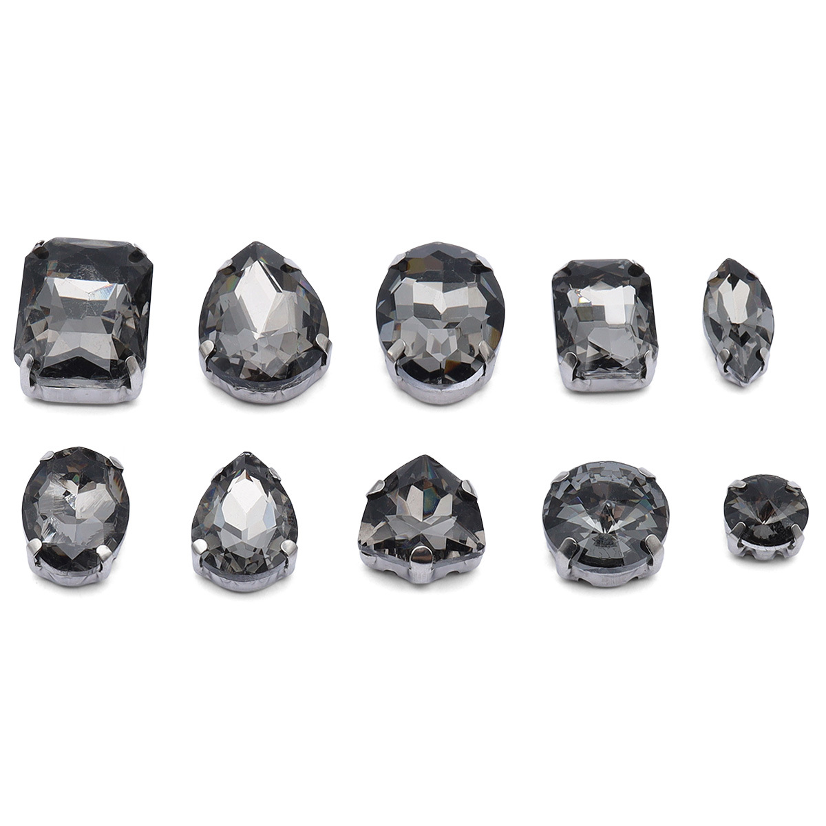 Хрустальные стразы в металлических цапах, форма страз: МИКС, серый, 10 штук, МФ-15