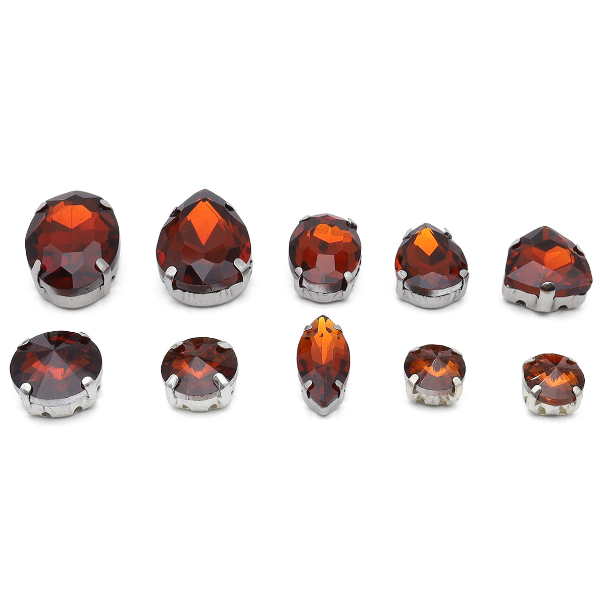 Хрустальные стразы в металлических цапах, форма страз: МИКС, янтарный, 10 штук, МФ-18