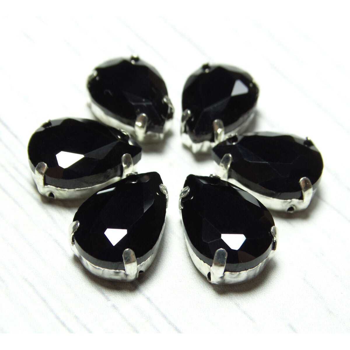 Хрустальные стразы в цапах формы капля, черный 10х14 мм, 5 шт АЦ013НН1014