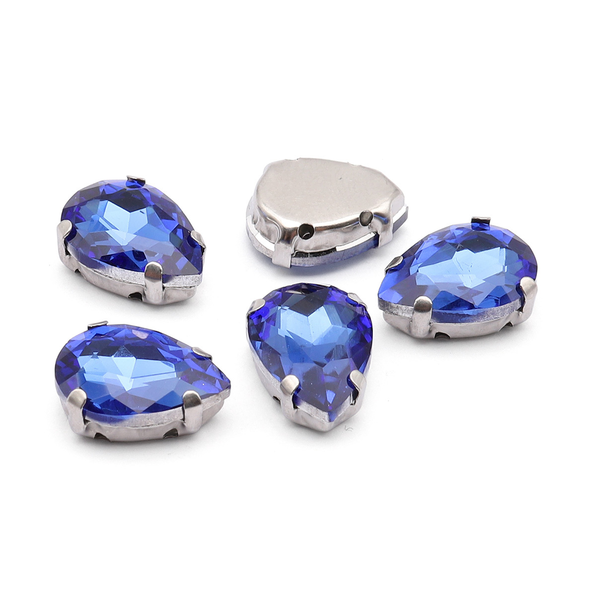 Хрустальные стразы в цапах формы капля, сапфир 10х14 мм, 5 шт., АЦ010НН1014